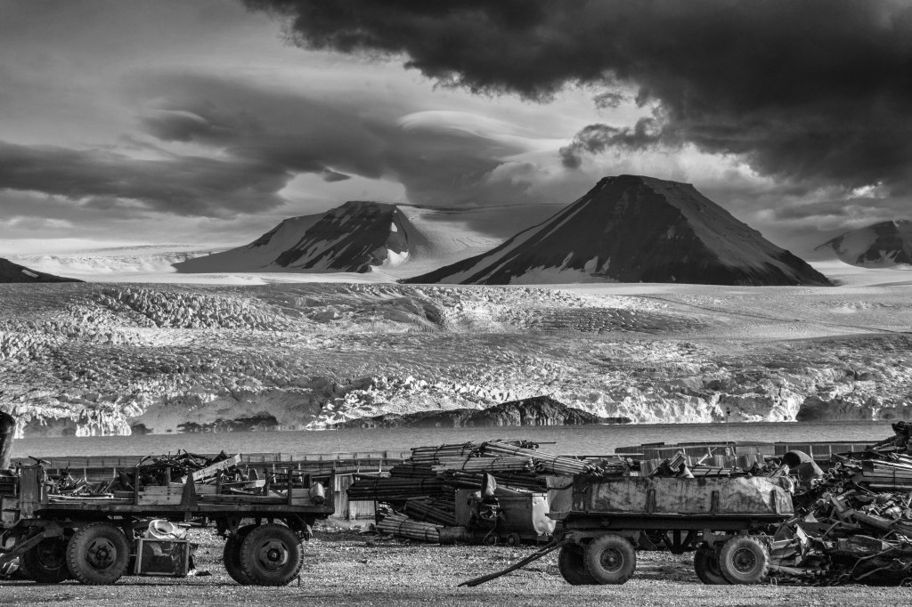 and left behind everything: buildings, equipment, furniture, photos, books in the library, exhibits in the museum, toys in the kindergarten, medical files in the clinic, sports equipment, and musical instruments, among other items. The last thing they did was they locked all the buildings and raised a monument: a representative miner’s trolley full of coal. On the trolley is written in the Russian language: “On March 31, 1998, the last ton of coal was extracted from the mine of Pyramida”.