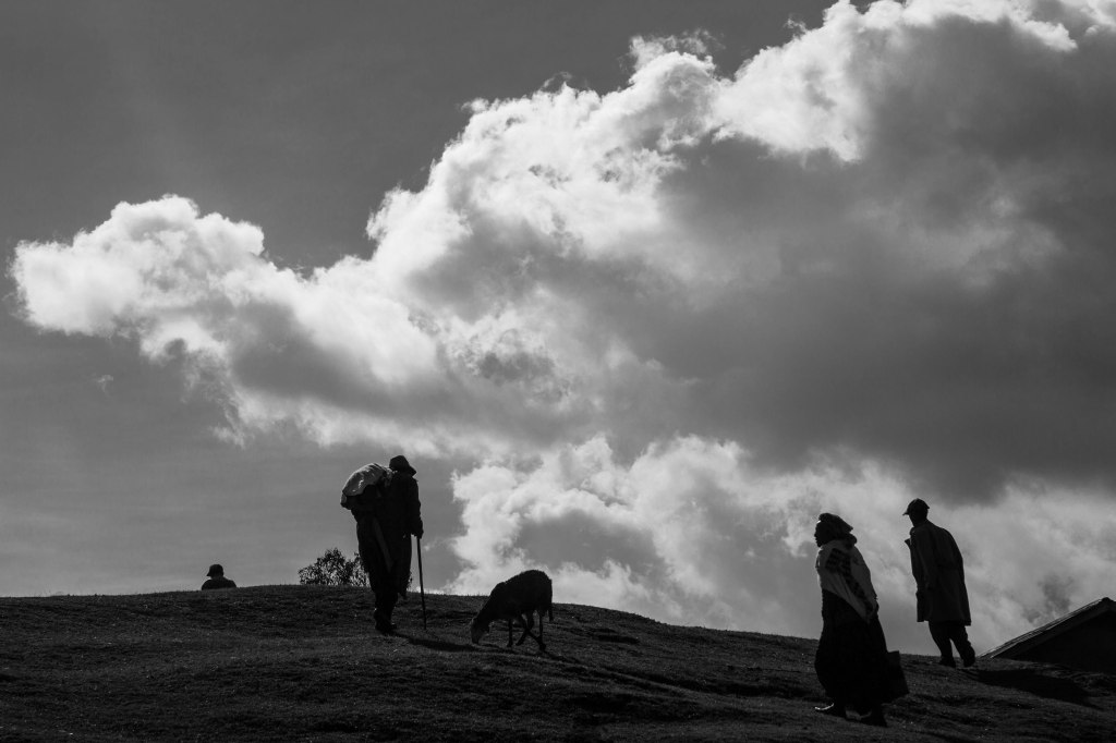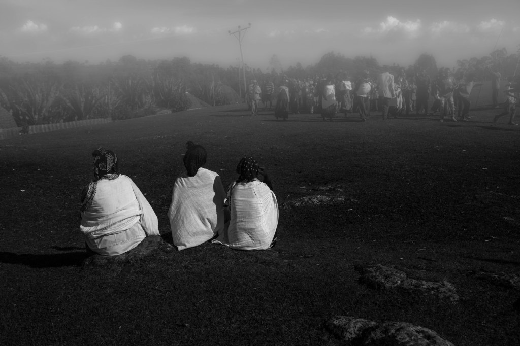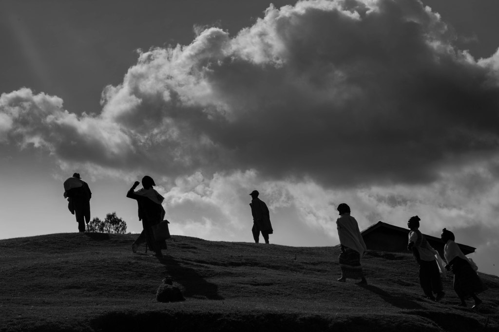 The drive was long and tiring. I was about two hours away from Addis Ababa when I decided to stop to eat. I parked my car at the bottom of a barren hill and stepped out into the crisp afternoon. The bright sun created a stark contrast of shadow and light. I let my eye wander up the hillside and into the sky. A cloud was bursting with more glory than any palace, greater than any mountain, yet lighter than a single feather. Oblivious to this moment of beauty were groups of individuals walking slowly towards the top of the hill and disappearing over its crest. I decided to join them in hopes of finding a food vendor or a restaurant where I could eat a late lunch.