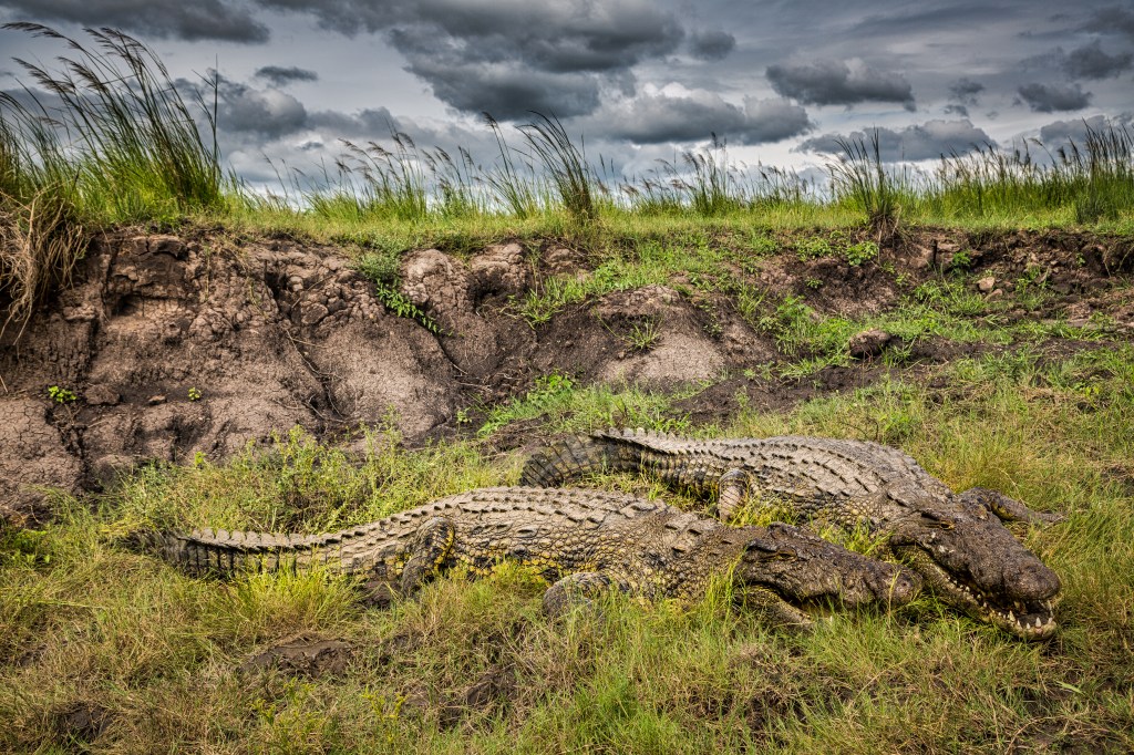 “Crazy bastards,” the guide said with laugh, and then pointed at something about one hundred yards away. I stood up in the boat and looked closely until I could see seven massive crocodiles relaxing on the shore with their mouths wide open. Our boat slowly approached them until they were only ten feet away. The crocodiles did not pay attention to us, but simply continued their sunbath.