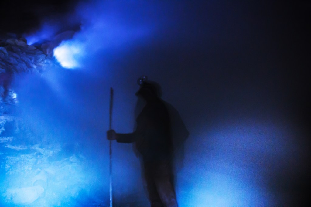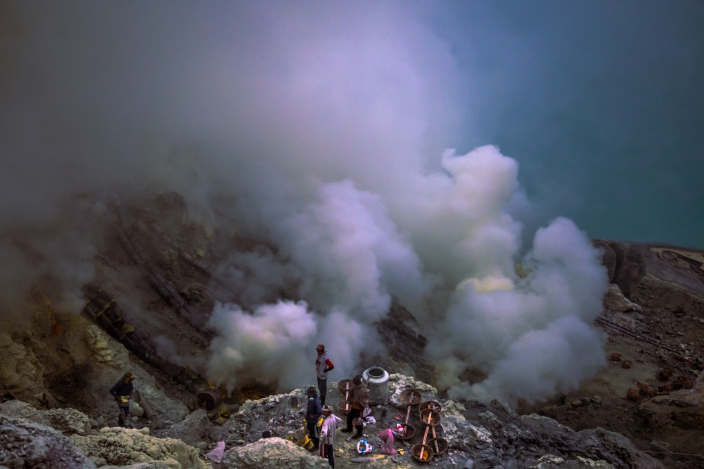 Utomo is a forty-seven year old man who lives in Gladah, East Java, Indonesia. He is a former sulfur miner. He used to wake up around midnight every day to walk four kilometers to a turquoise-colored acidic crater lake. He would break off chunks of sulfur, load them into baskets, and carry them to Paltuding Valley. At first, he carried 170 pounds of sulfur chunks on his back because a carrying trolley would cost 200 dollars, and he could not afford to buy one.